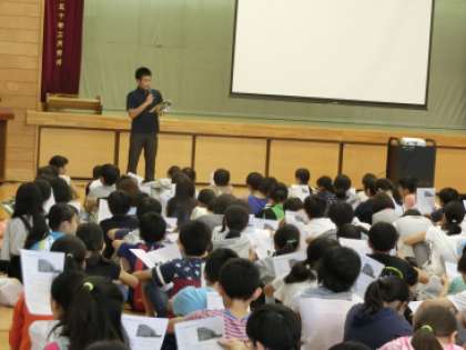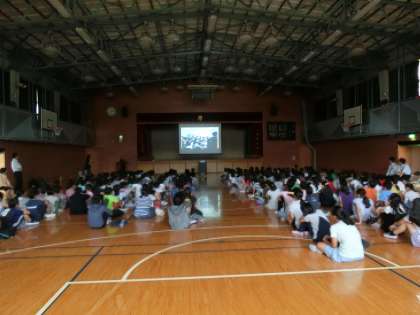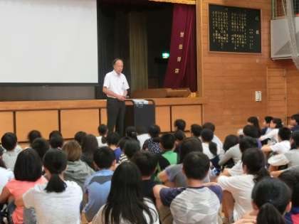 最初に、中学校の1学期の様子を先生から、続いて学校生活について生徒会から説明を受けました。