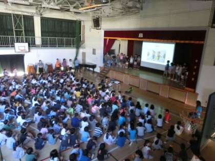 活動の様子の紹介、図書委員会からみんなへのお願い、おすすめの本クイズなどがありました。