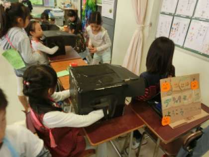 高学年の子どもが低学年の子どもに合わせて、ゲームを調整して楽しませていました。