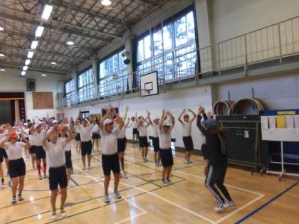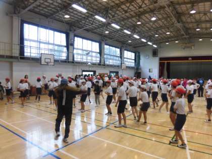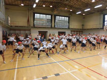 今日のオリパラダンス教室1、2時間目は、1年生と6年生が合同で実施しました。