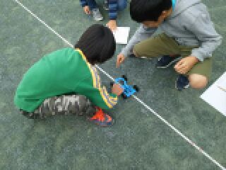 「ゴムのはたらき」では、「ゴムの伸び」と「ゴムの本数」に着目してゴムの力で動く車の走行距離を測ります。