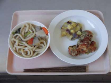 みそ煮込みうどん 牛乳 ちくわの天ぷら 鬼まんじゅう
