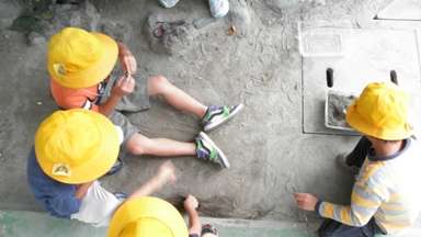 昼休みの時間にA昇降口の近くで、1年生が座り込んで夢中に土を掘っていました。そばにはコガネムシもいて、あきない様子です。1年生にとって、コガネムシは評価が高そうでした。