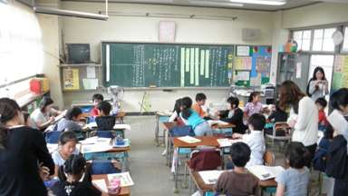 国語の物語教材「わすれられないおくりもの」で研究授業です。叙述をおさえながら、物語を味わいます。自分では気付かない視点を友達から学びながら、読み深めていく様子に、本校が研究で目指している認め合い学び合う子どもたちの姿がみられました。次は、4年生が11月29日に、1年生が12月1日に予定しています。
