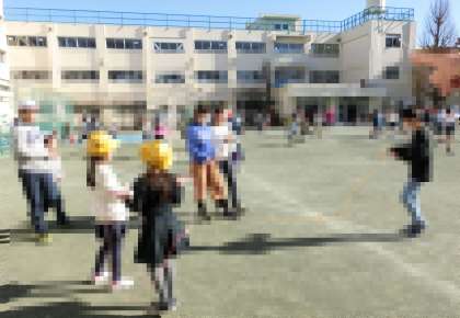 昼休みに兄弟学級のグループで交流しながら元気に仲良く遊びました。