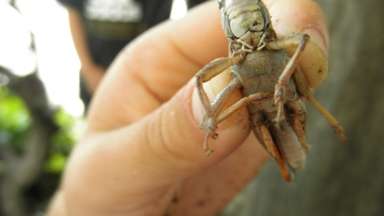秋らしい天気になってきました。校庭には、様々な虫たちが姿をみせます。写真は、瀬田小の草むらで発見したバッタです。
