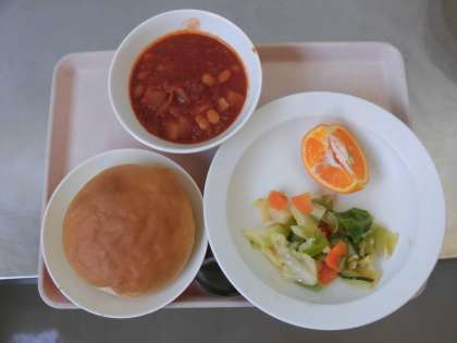 丸パン 牛乳 チリビーンズ くだもの