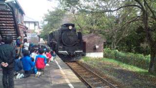 11時、SL広場で乗車体験中です。
