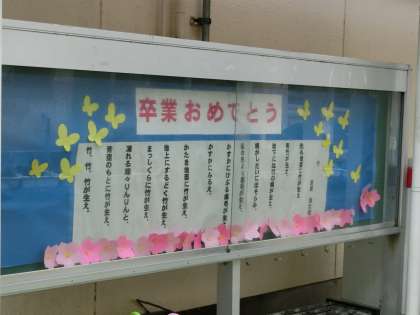 卒業へのお祝いを掲示しています。
