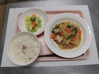 米:長野県 もち米:山形県 桜の花:神奈川県 にんじん:徳島県 新じゃがいも:鹿児島県 新たけのこ:福岡県 玉ねぎ:北海道 ふき:愛知県 いんげん:沖縄県 キャベツ:愛知 きゅうり:埼玉県 鶏肉:山梨県