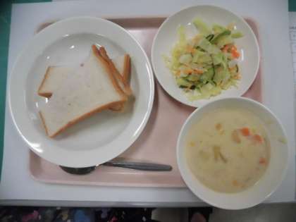 ブルーベリージャムサンド コーンシチュー フレンチサラダ 牛乳