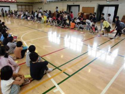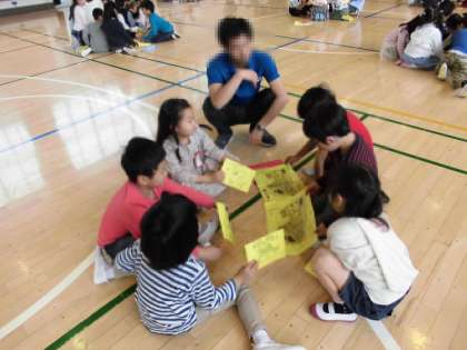 5月2日(水)の遠足での、1、2年生の顔合わせです。