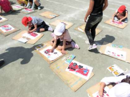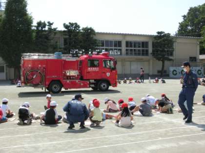 玉川消防署の協力を得て、消防車の写生会を行いました。