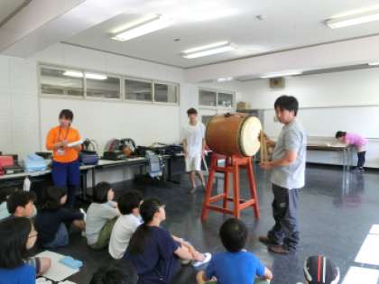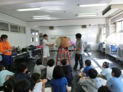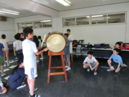 運動会の係会で、地域の方に「瀬田音頭」の太鼓の打ち方について教えていただきました。