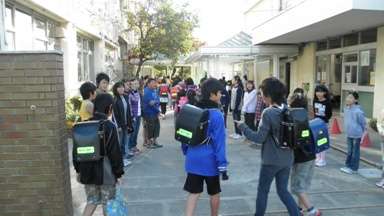 今週は、登校時に正門で代表委員会が「おはようございます」シャワーをしています。今日は八の字に並び、より目と声であいさつができるようにしています。いつもより、登校する子どもたちの反応がよかったです。