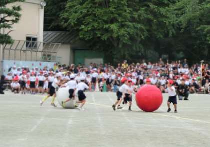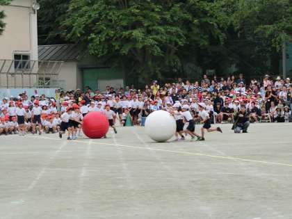2年生が大玉を対角線上に転がしています。