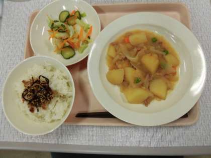 ごはん かみかみ佃煮 肉じゃが 野菜の甘酢あえ 牛乳