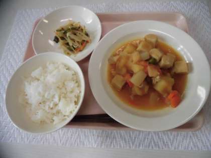 ごはん 鶏肉とじゃがいもの煮物 わかめサラダ 牛乳