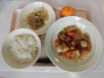 ごはん 酢豚 野菜の中華風味 くだもの 牛乳