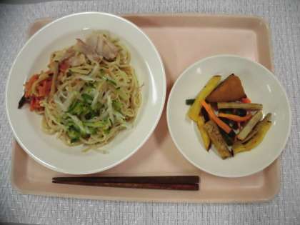 冷やし中華 フライドべジ 牛乳