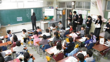 一昨日の4年3組に続いて、今日は1年3組で研究授業をしました。その後、研究協議会をして、よりよい指導について意見交換を通して深めていきます。月曜日及び水曜日を4時間授業にさせていただいたのはそのためです。