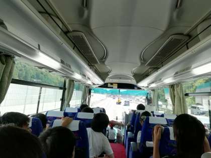 バスの中では、バスレク係が考えたリクリエーションで大盛り上がりです。