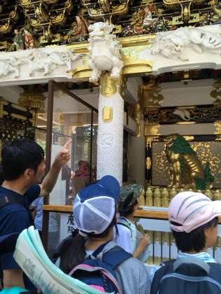 行動班で協力して、10問の「東照宮究極クイズ」を解きながら見学しました。世界遺産となった貴重な文化に触れることができました。
