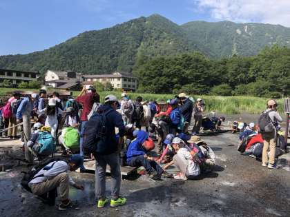 宿舎から徒歩1分、源泉に10円玉を浸けると、興味深い反応が見られました。