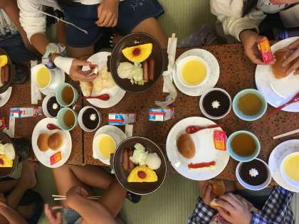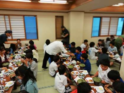 食事係のあいさつで、感謝の気持ちでいただきました。