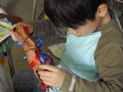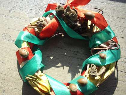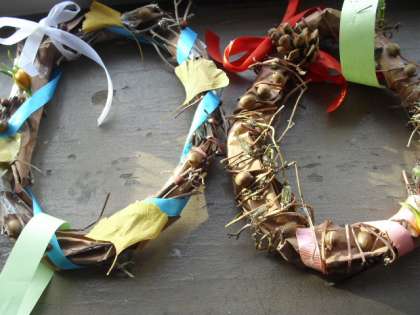 アサガオのつると、砧公園で拾ってきた秋のものたちを使った