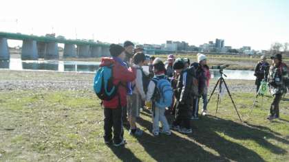 快晴の天気となり、絶好の野鳥観察日和となりました。野鳥ボランティアの丁寧な説明と望遠鏡のお陰で、20種類以上の色鮮やかな野鳥を観察することができました。