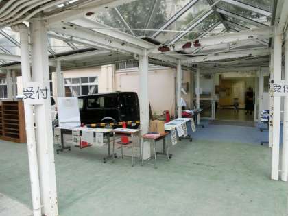 A昇降口にて、受付を済ませてから校舎へお入りください。