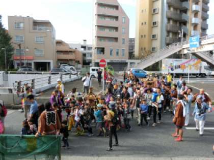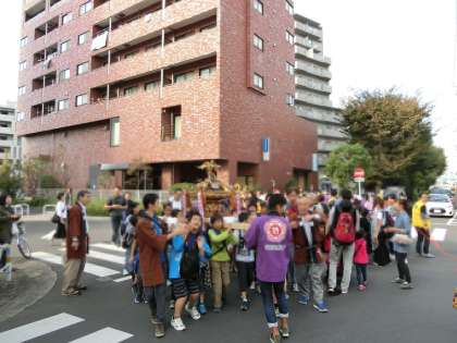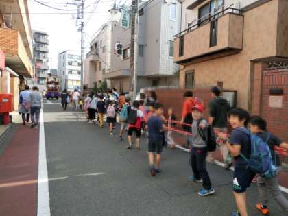 秋晴れのなか、大勢の子供たちがお祭りに参加していました。