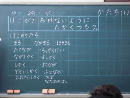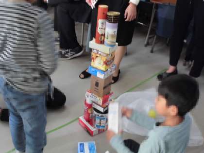 「かたち」を学ぶ授業で、箱を高く積む活動を主に研究授業を行いました。