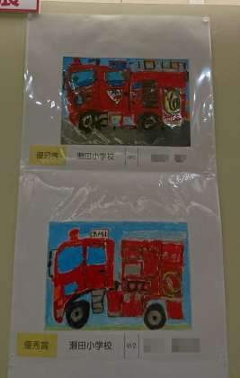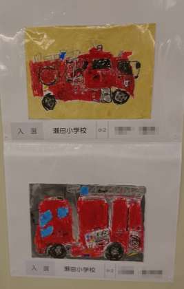「はたらく消防の写生会」作品展が二子玉川駅からショッピングセンターへの連絡地下道にて開催されました。