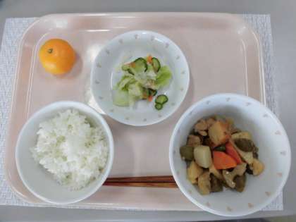 ごはん 牛乳 がめ煮 野菜の甘酢和え みかん