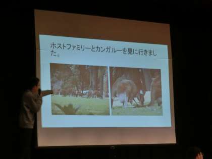 今日の全校朝会では、派遣先のバンバリー市での経験やホストファミリーとのやりとりなどが話されました。