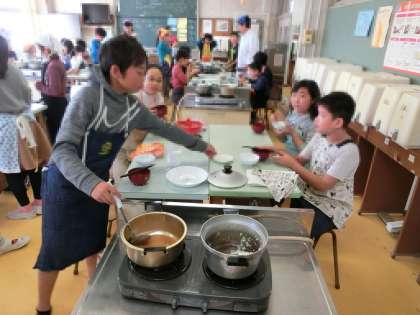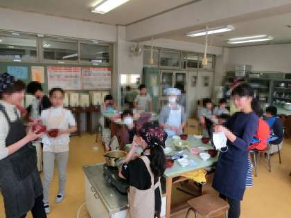 お味噌汁は、煮干しから出汁を取り、自ら調理したご飯を美味しそうに頬張っていました。