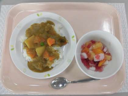 カレーライス 牛乳 紅白ゼリーポンチ(65周年記念リクエスト献立)