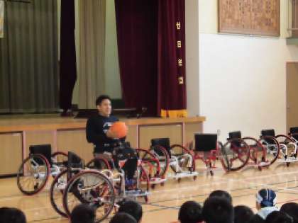 プロ車椅子バスケットボール選手をお迎えし、4年生と5年生を対象に体験授業を行いました。