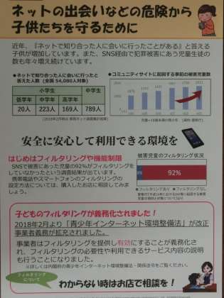 フィルタリングや利用するときにはリビングのみなど、犯罪の巻き込まれの防止が必要となります。