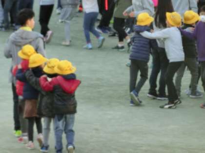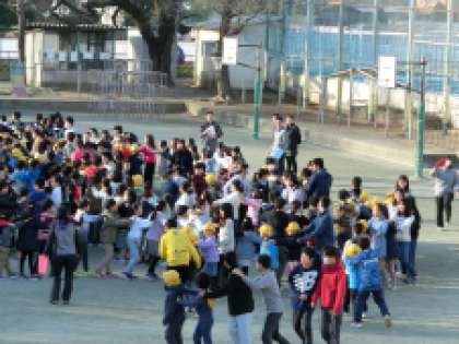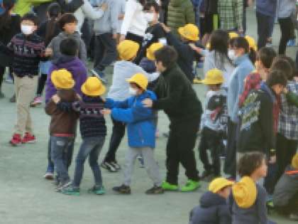 集会委員の企画で、兄弟学級でジャンケン列車による交流を行いました。