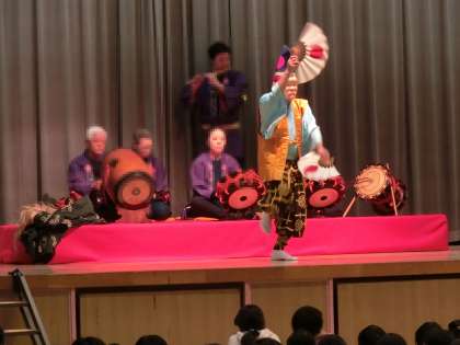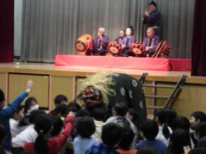 笛太鼓での舞や獅子舞など、子供たちは大いに盛り上がりました。