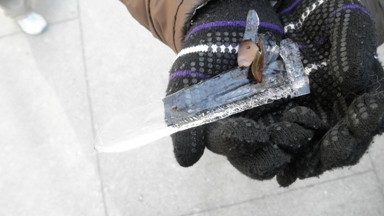 寒い朝が続きます。B昇降口とC昇降口近くにある池は陽が当らないため、ここのところ朝は氷っています。その氷を割るのが子どもたちの登校時の楽しみとなっています。また、登校途中でお気に入りの氷を持ってくる子もいます。氷は寒さの象徴ですが、子どもにとっては割っても叱られない遊び道具になってしまいます。