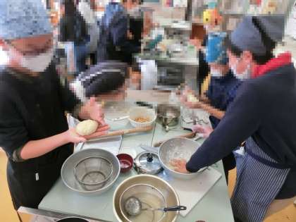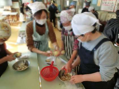 調理実習で「イモもち」をつくりました。上手に包丁をつかってじゃがいもの皮を剥き、芽を取り除いていました。