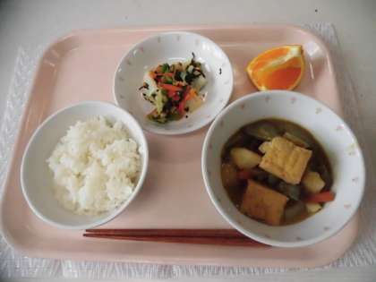 ごはん 牛乳 五目うま煮 白菜ののりあえ くだもの(デコポン)
