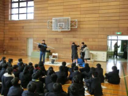 地域の方々と中学校1年生を対象にして瀬田中学校と瀬田小学校で交互に実施される「地域防災訓練」が、本年度は中学校で開催されました。