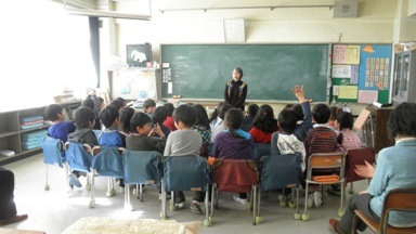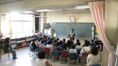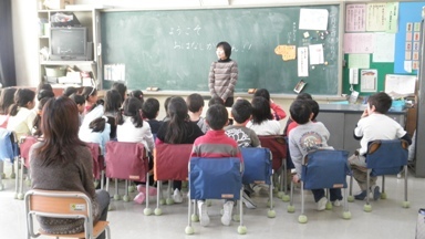 お話カメさんは、地域の方が毎学期1年生から3年生までの各学級で行われています。語りながらお話の世界を楽しませてくれます。子どもたちの表情を見ながら語るため、子どもたちは、お話の世界にしっかりとひきずりこまれていました。