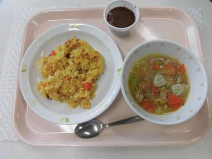 カレーピラフ 牛乳 マカロニスープ 豆乳ココアゼリー