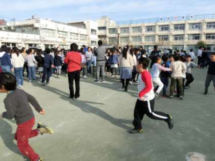 全校で「瀬田小探検に行こうよ!探検ボードも持ってるし!友達いるし!」のかけ声から、猛獣狩りのゲームを模した遊びをしました。